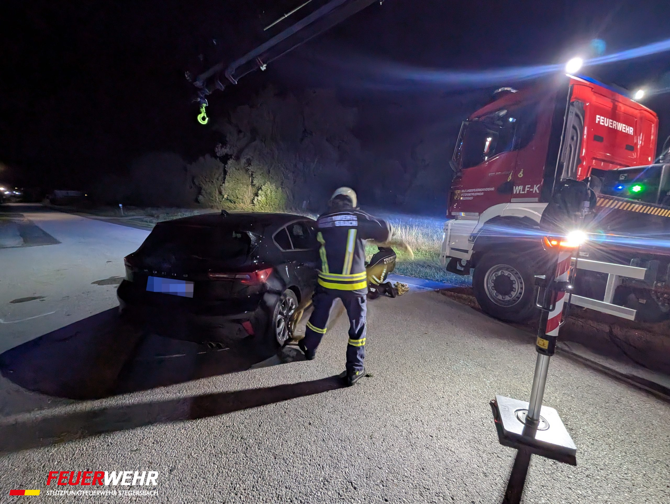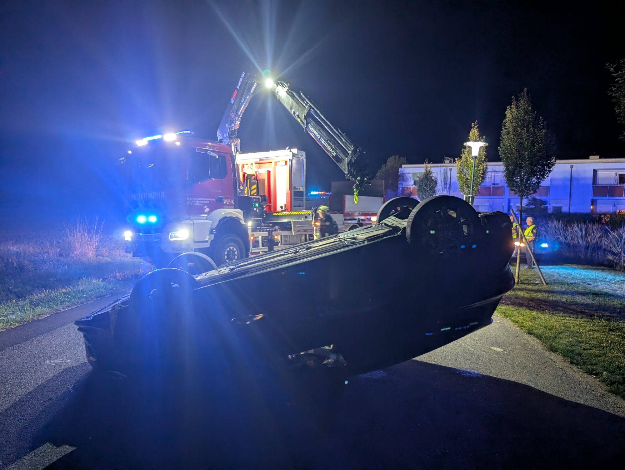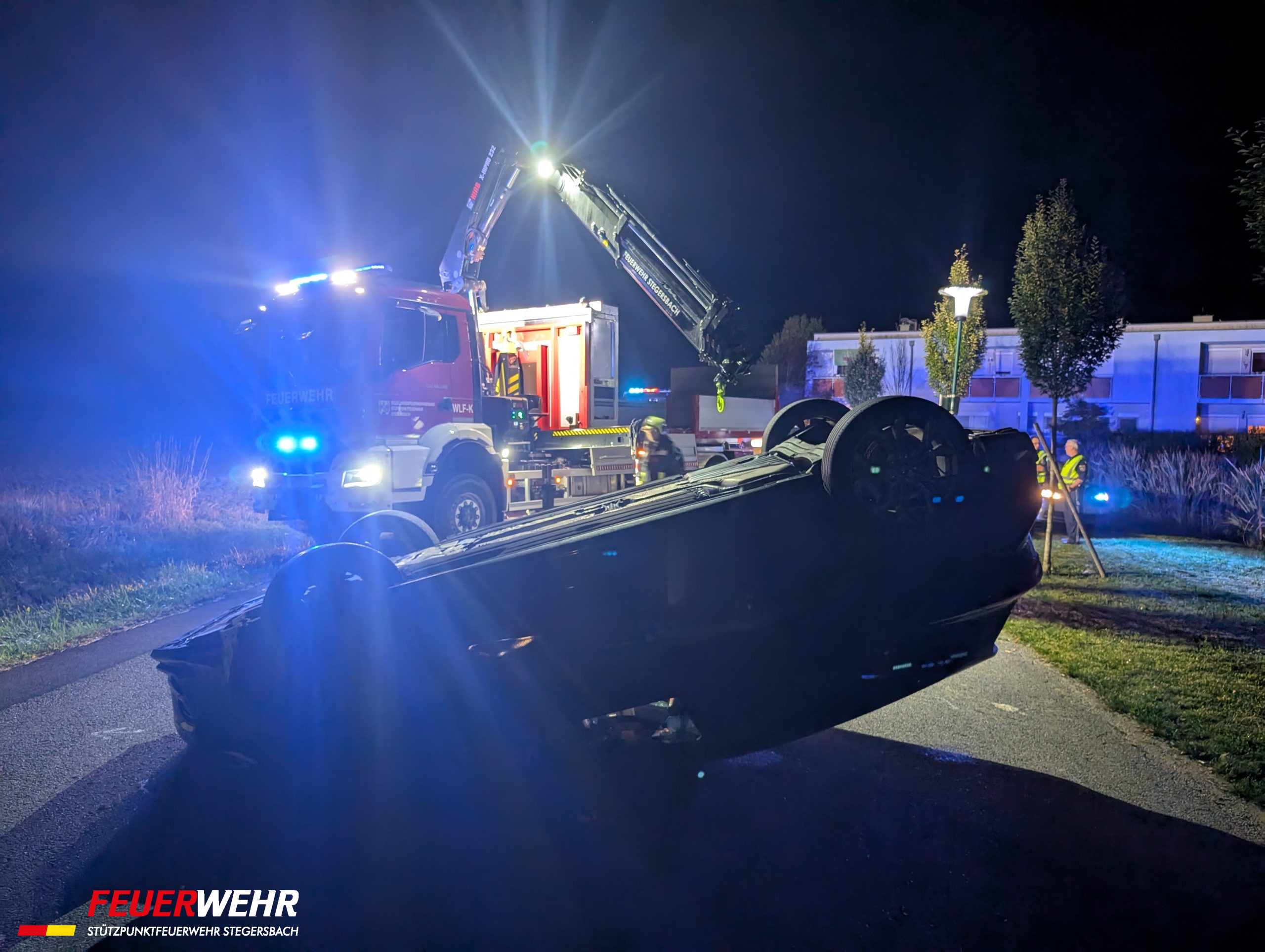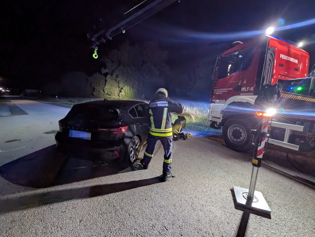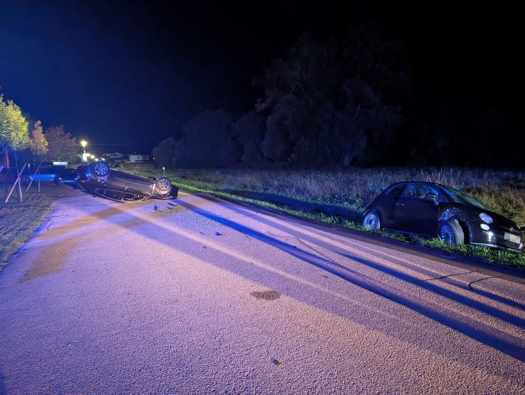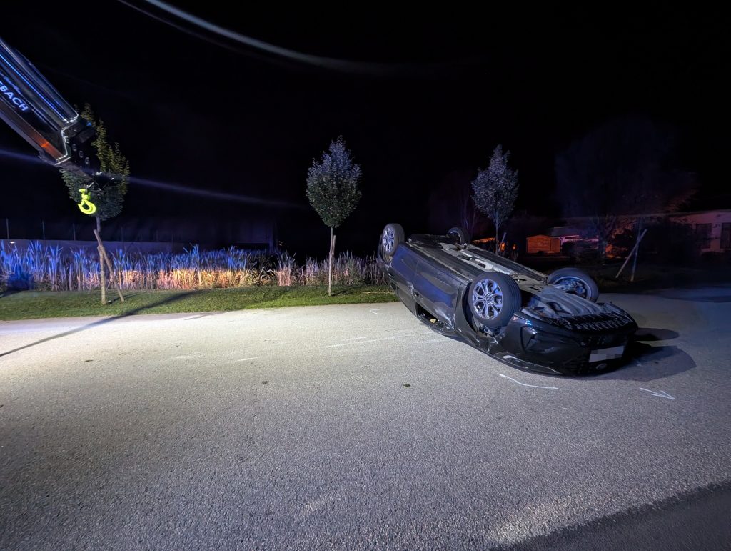 Ein PKW stieß in der Teichgasse mit einem geparkten Fahrzeug zusammen, überschlug sich und blieb auf dem Dach liegen. Der Lenker konnte sich unverletzt aus dem Fahrzeug befreien. Wir drehten den PKW mittels Kran wieder auf die Räder und stellten ihn gesichert in der Nähe ab. Verletzt wurde niemand.