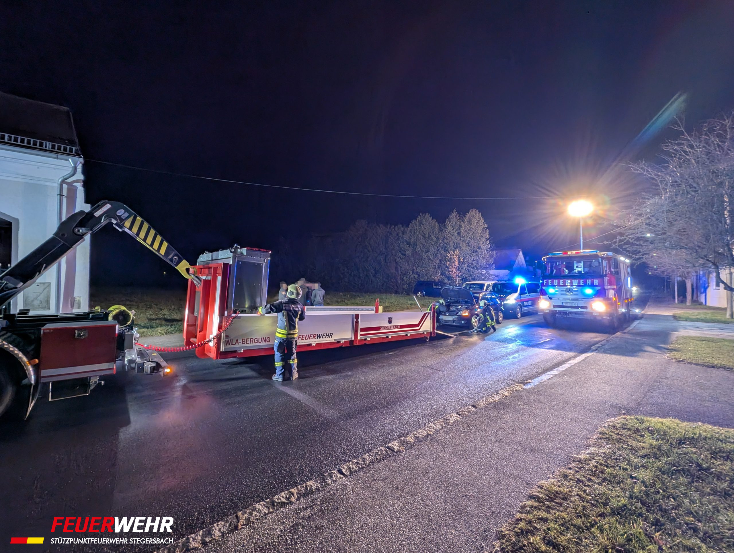 Ein PKW stieß in der Schoaderstraße mit einem geparkten Fahrzeug zusammen und blieb fahruntüchtig auf der Straße liegen. Die Polizei forderte uns zum Freimachen der Verkehrswege und Bergung des Fahrzeuges an. Der auf der Straße stehende PKW wurde mittels WLF und Abschleppmulde geborgen und gesichert abgestellt. Anschließend wurde die Unfallstelle von Splittern und Betriebsstoffen gereinigt. Verletzt wurde bei dem Unfall niemand.