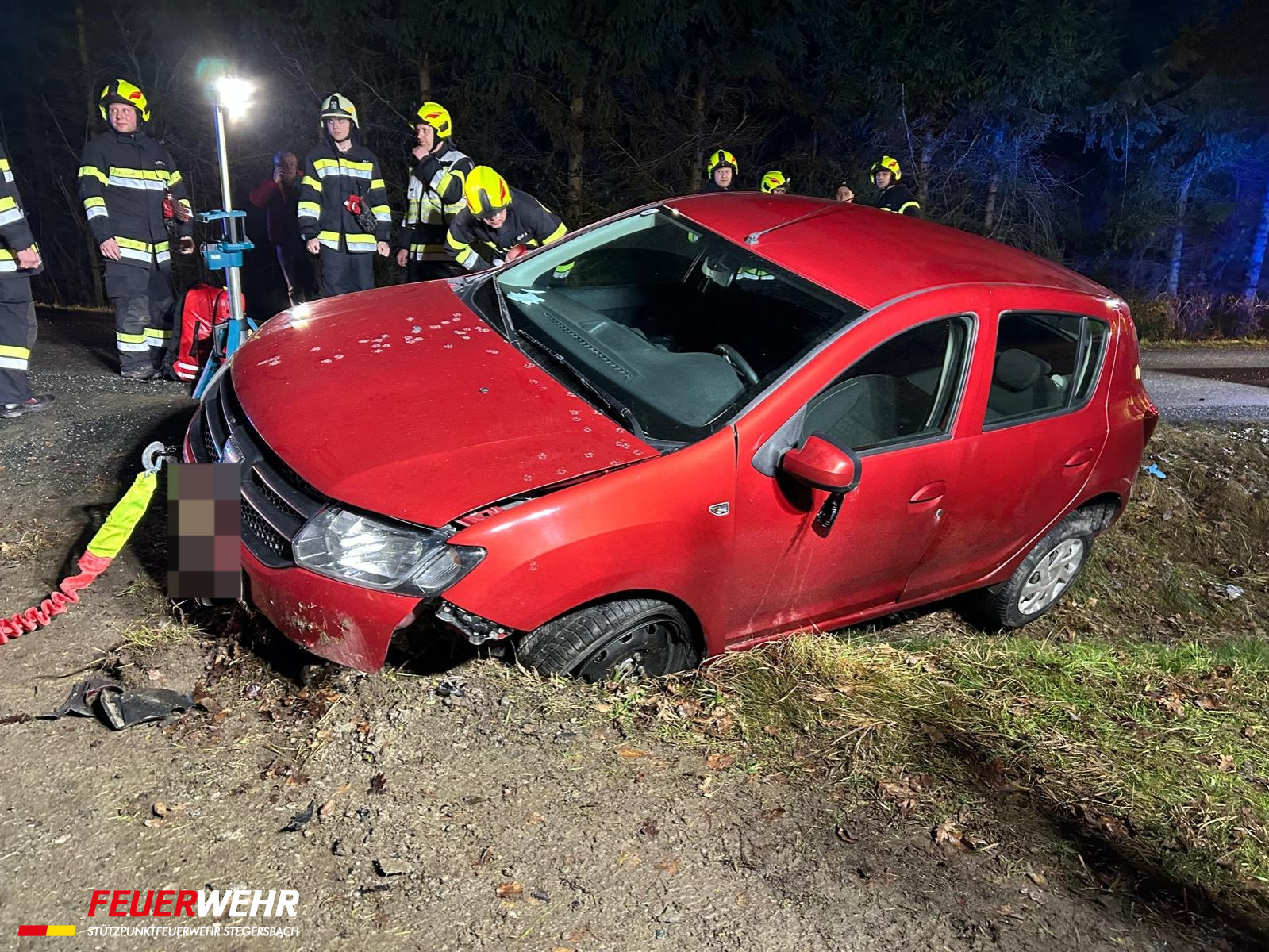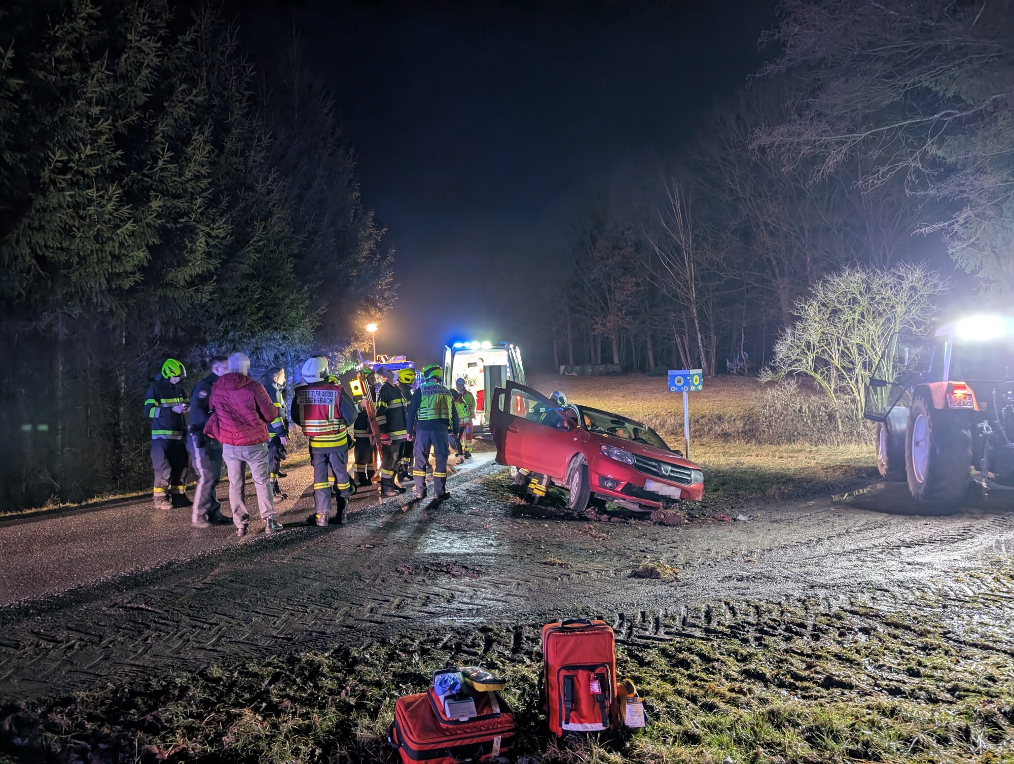 Der schwer verletzte Fahrer war glücklicherweise nicht eingeklemmt und konnte in Zusammenarbeit mit dem Rettungsdienst mit dem Spineboard aus dem PKW gerettet werden. Er wurde ins Spital gebracht. Der PKW wurde mit einem anwesenden Traktor geborgen und gesichert abgestellt.