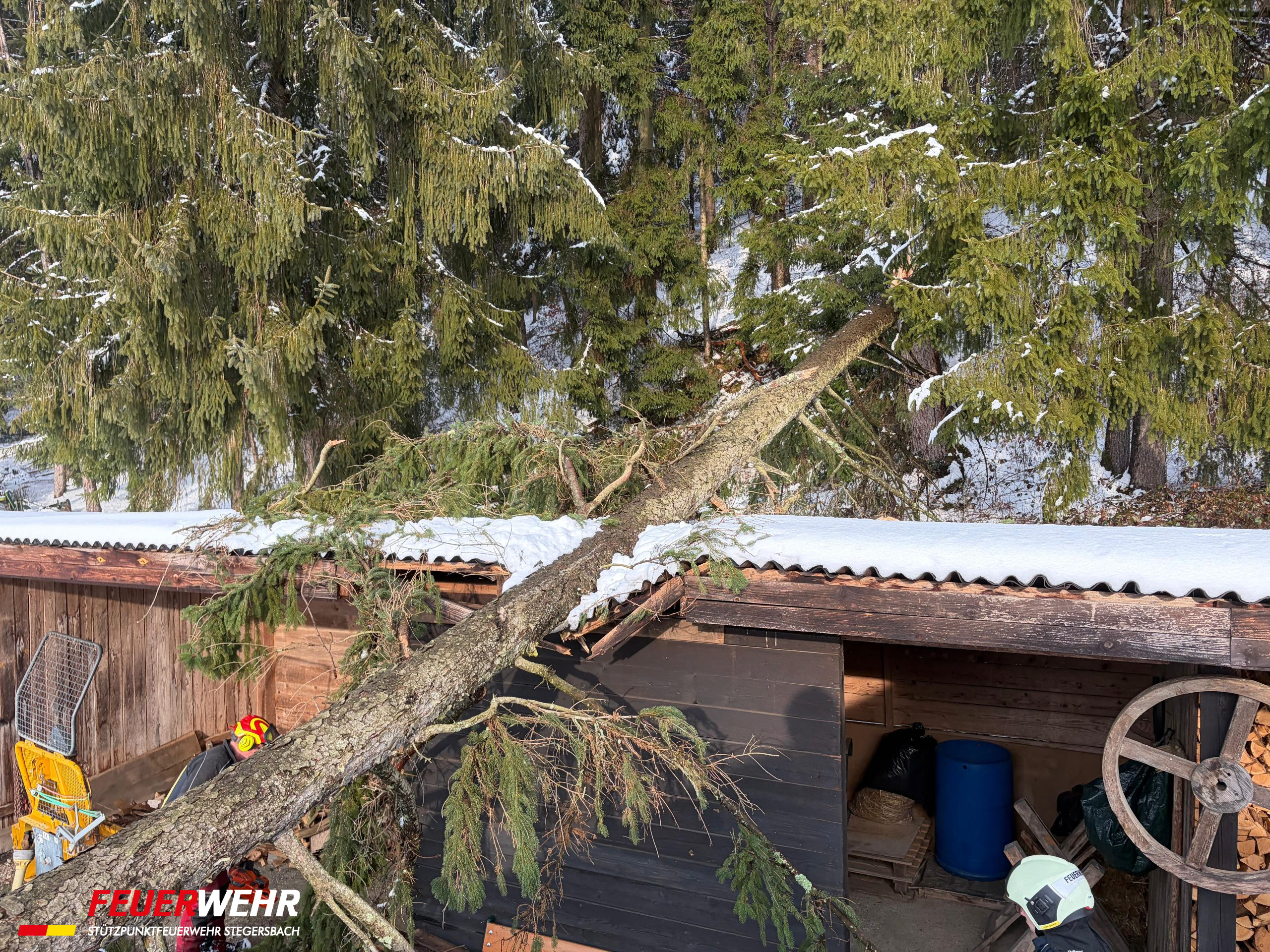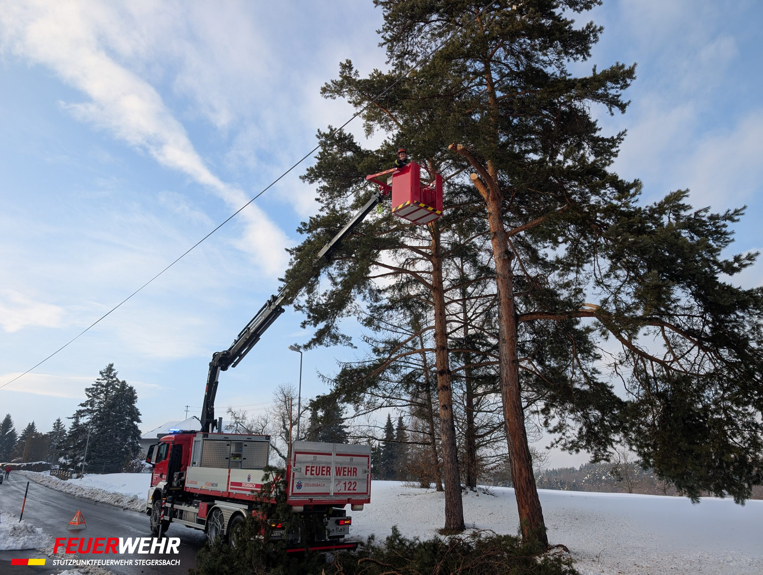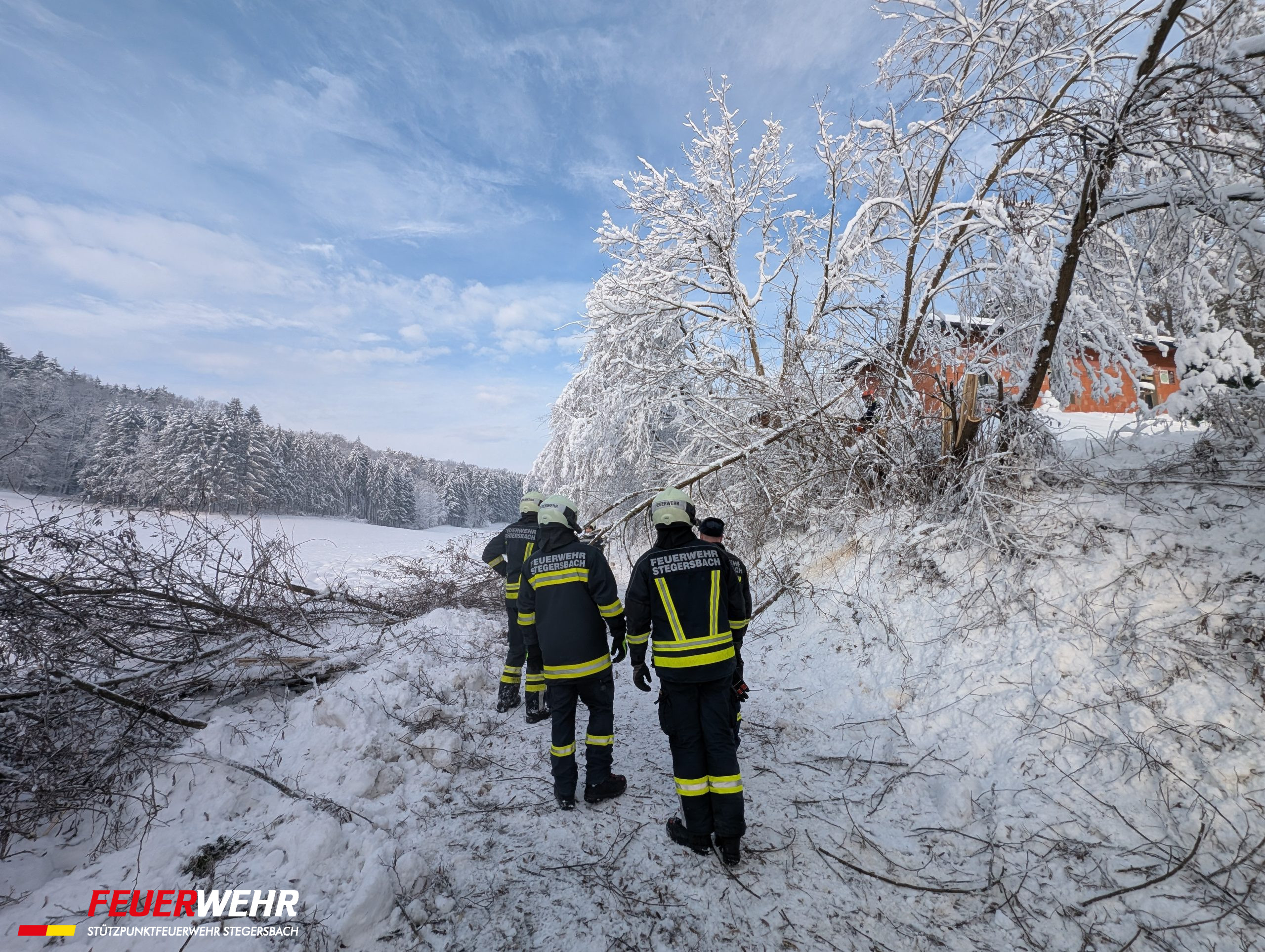 Durch die enorme Schneelast kam es vermehrt zu umstürzenden Bäumen. In einigen Straßenzügen im Ortsgebiet von Stegersbach mussten aus Sicherheitsgründen Straßensperren eingerichtet werden, da die Gefahr weiterer umstürzender Bäume für unsere Einsatzkräfte zu hoch war.