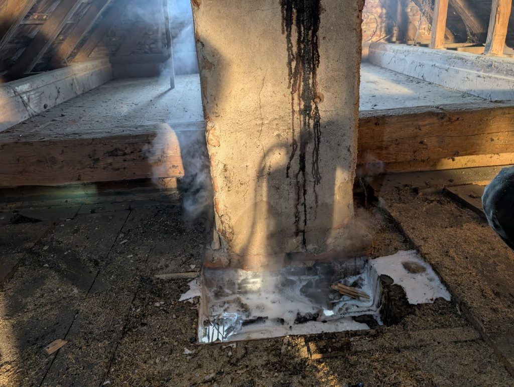 Gegen Mittag erreichte uns der Hilferuf eines Rauchfangkehrers, der einen Zwischendeckenbrand festgestellt hatte. Unverzüglich wurden die Prioritäten neu gesetzt und mehrere Fahrzeuge in die Neudauerstraße disponiert.