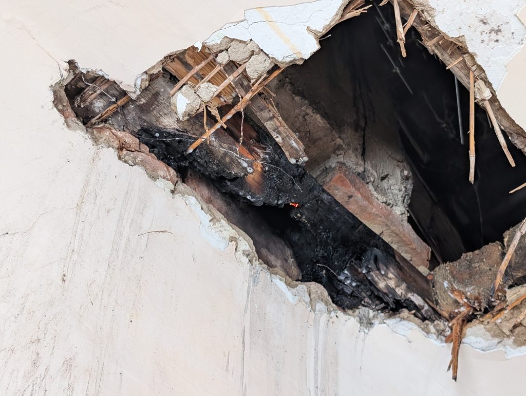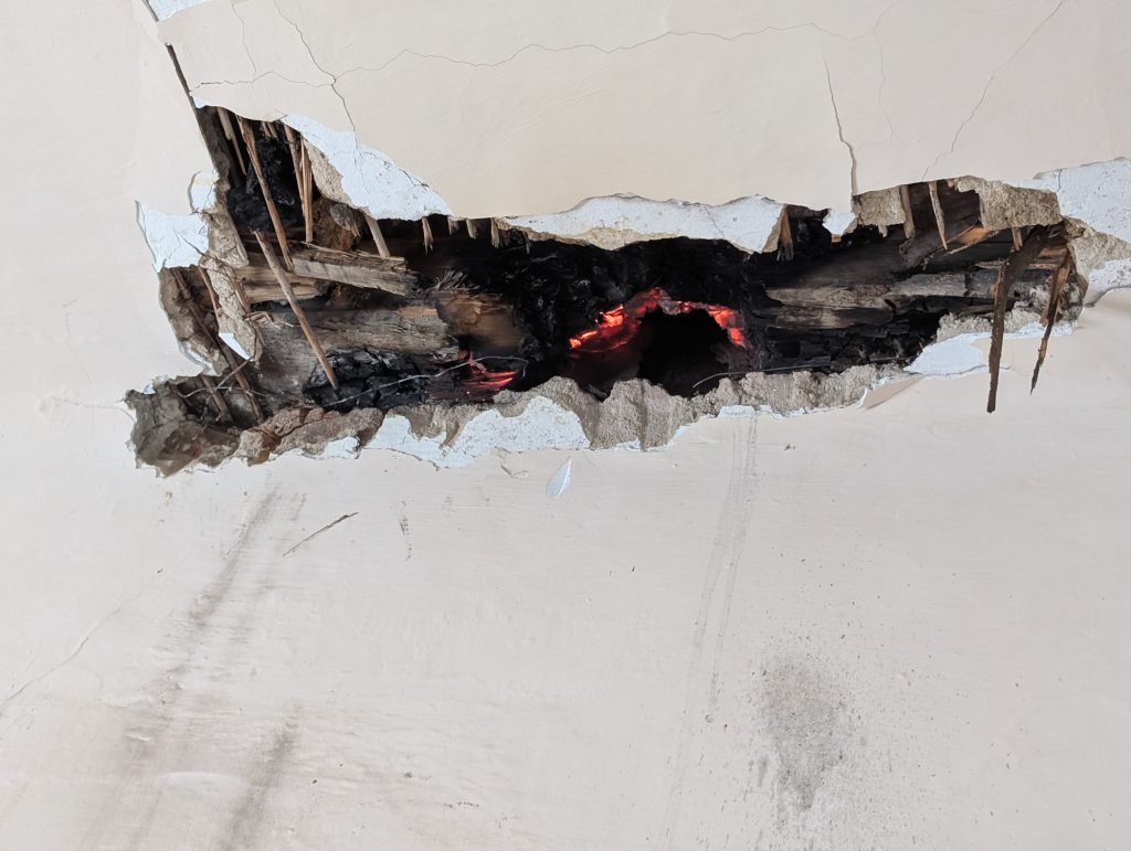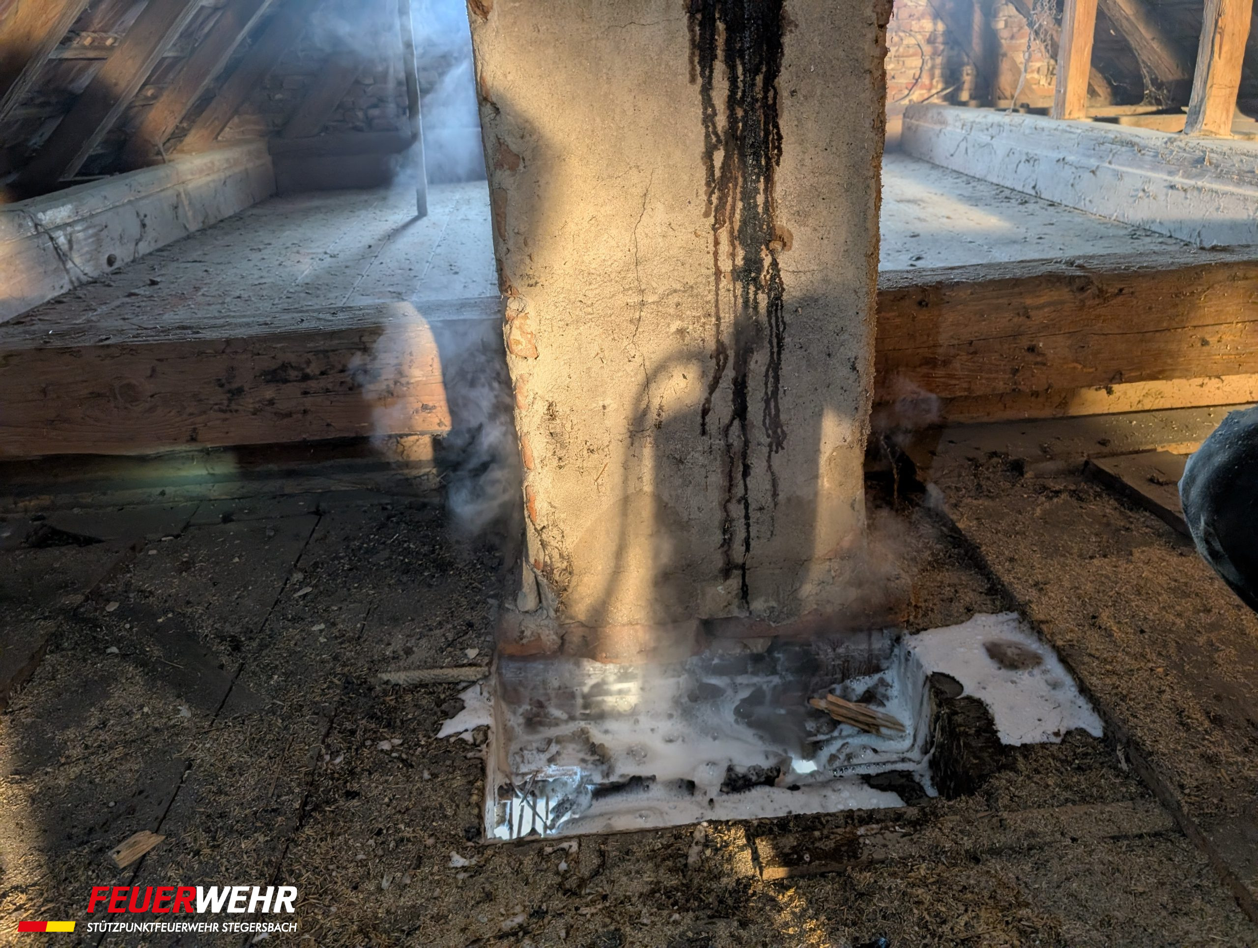 Im Bereich des Rauchfangs war es zu einem Glimmbrand einer Holzdecke gekommen. Mittels Kleinlöschgerät konnte der Brand rasch unter Kontrolle gebracht und ein größerer Schaden verhindert werden.
