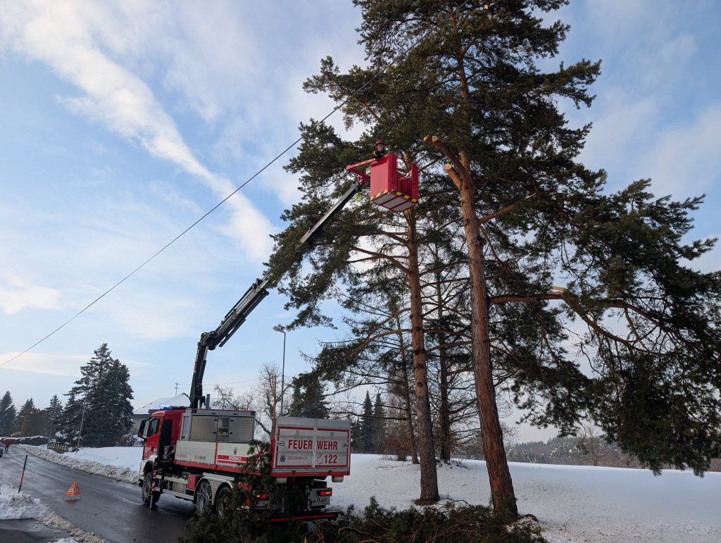 Am Folgetag standen zunächst die gesperrten Straßen im Fokus. Die umgestürzten Bäume wurden entfernt und weitere gefährdete Bäume vorsorglich umgeschnitten. Dadurch konnte der Winterdienst seine Arbeit wieder aufnehmen und die Straßen Schritt für Schritt geräumt werden.