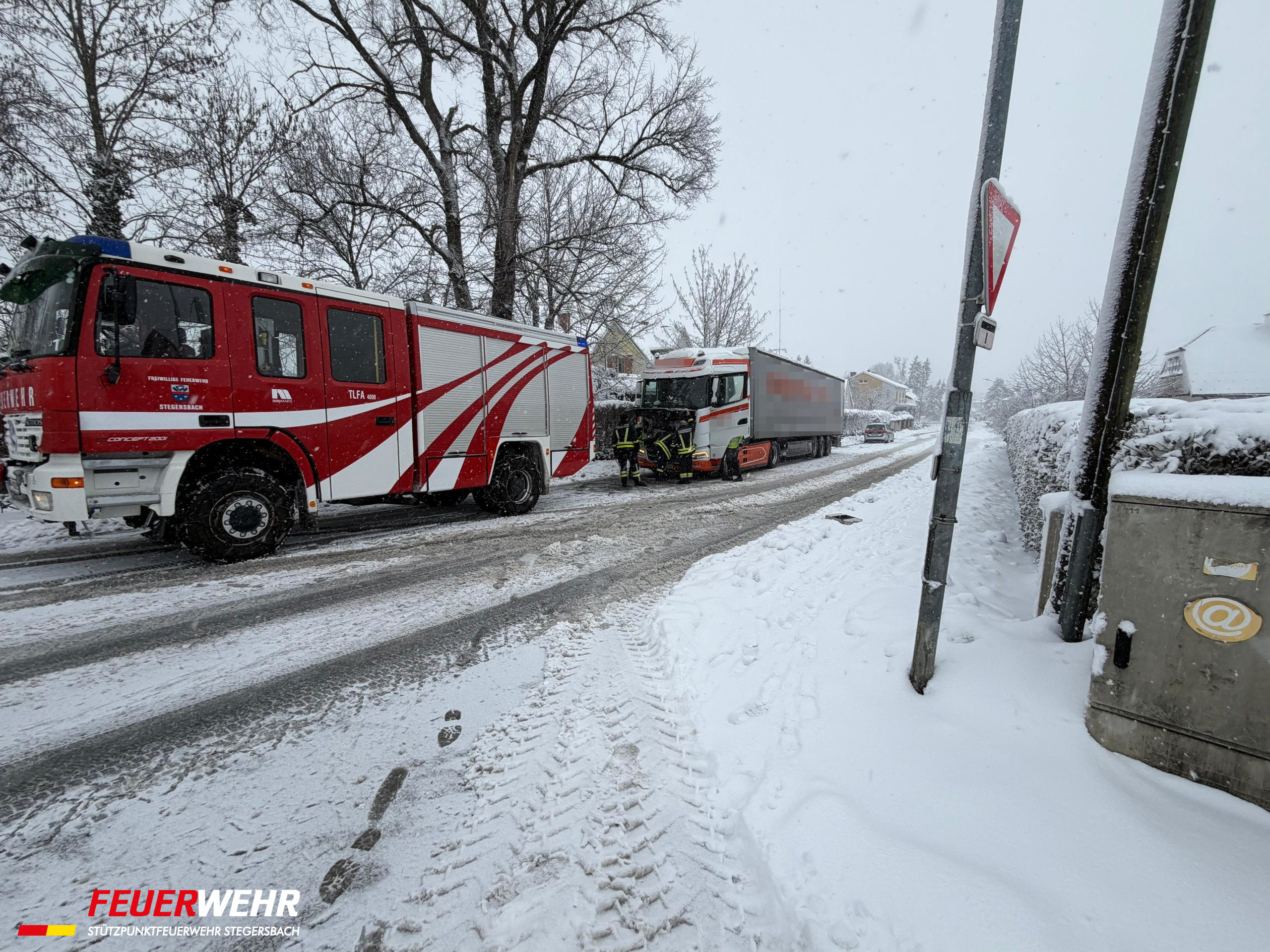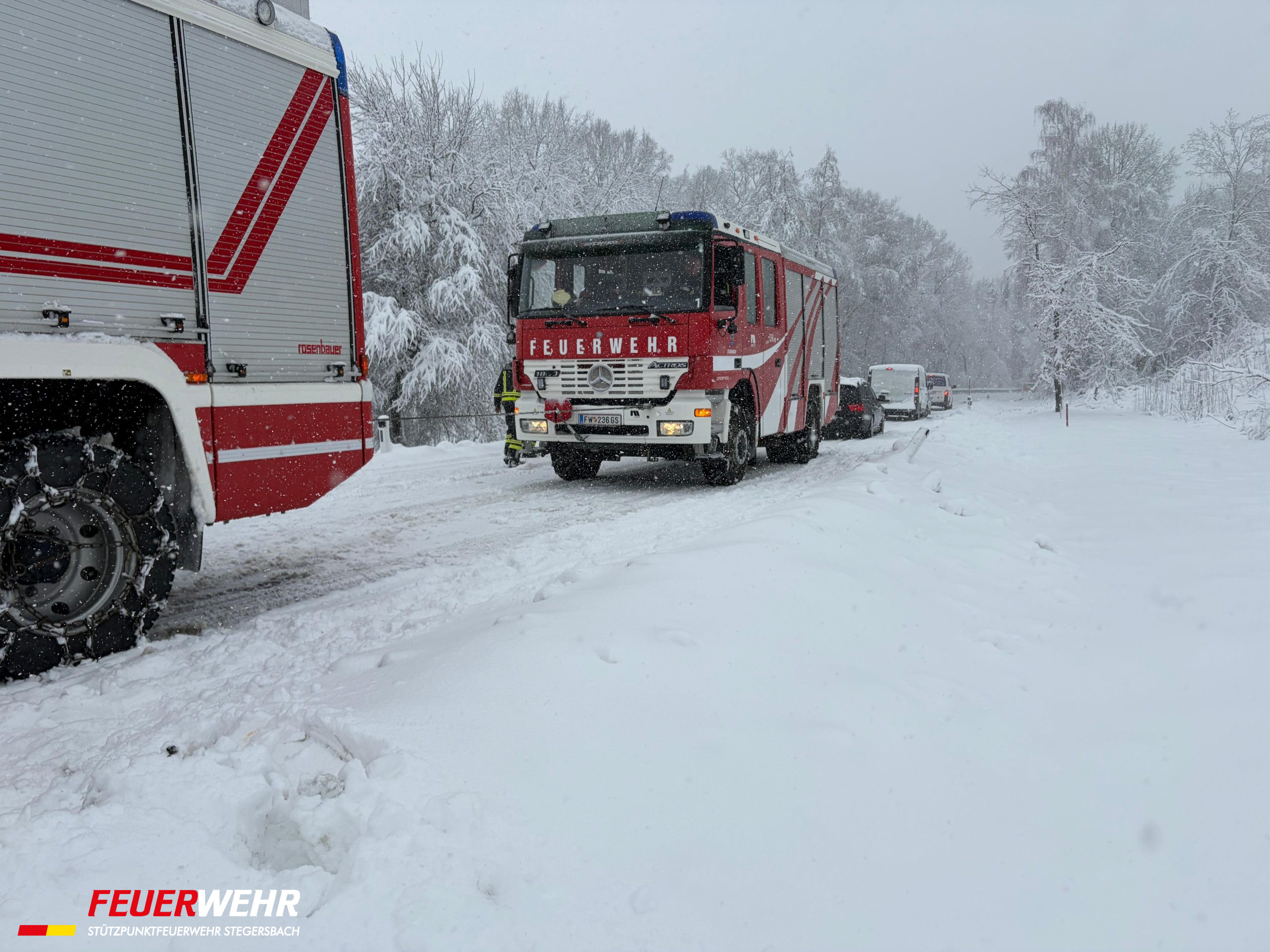 Unsere Mitglieder sind seit ca. 05:30 Uhr aufgrund des heftigen Schneefalls im Einsatz, mit Stand 15:15 Uhr wurden über 40 Einsatzadressen abgearbeitet. Die Feuerwehr Stegersbach steht mit allen Fahrzeugen und rund 25 Frau und Mann im Einsatz. Wir bitten Sie weiterhin vorsichtig zu fahren und nicht unbedingt notwendige Fahrten zu unterlassen! Diverse Straßenzüge sind aufgrund von Schneebruch gesperrt und Bäume drohen umzustürzen – Vorsicht in Waldbereichen!